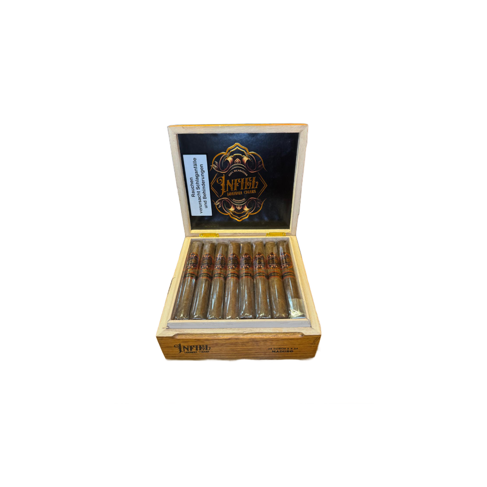 Die Loaisiga Infiel Maduro ist das kraftvolle Flaggschiff der Infiel-Serie – eine Zigarre, die Tiefe, Süße und Würze in vollendeter Balance vereint. Ihr dunkles, fermentiertes San Andrés Maduro-Deckblatt aus Mexiko umhüllt sorgfältig gereifte nicaraguanische Tabake, die gemeinsam ein vollmundiges, intensives Raucherlebnis liefern.
