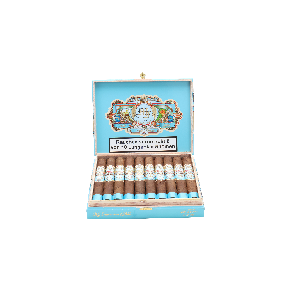 Für Umblatt und Einlage werden erstmals Tabake von der Finca La Opulencia verwendet, gekrönt von einem hochwertigen Connecticut-Broadleaf-Deckblatt. Die My Father Blue zählt zu den meist erwarteten Neuheiten des Jahres.