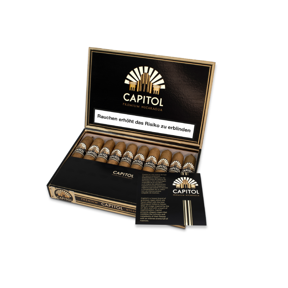 Dank der präzisen handwerklichen Verarbeitung bietet die Capitol Casino einen gleichmäßigen Zug und ein tadelloses Abbrennverhalten. Diese Zigarre ist ideal für Genießer, die eine ausgewogene und komplexe Zigarre schätzen, die sowohl für besondere Anlässe als auch für entspannte Genussmomente geeignet ist.