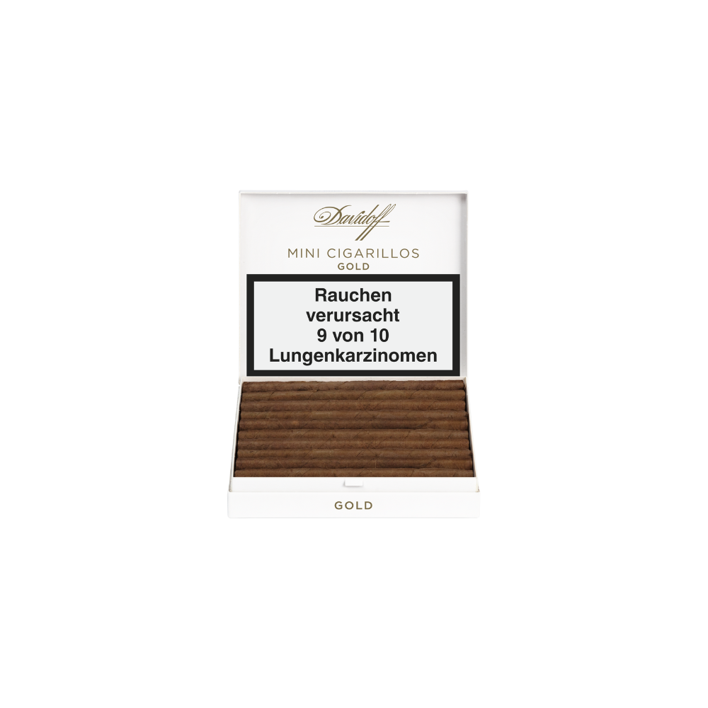 Die Mini Cigarillos Gold bieten ein cremiges und elegantes Raucherlebnis in einem kompakten Format. Mit einem indonesischen Sumatra-Deckblatt, einem Java-Umblatt und einer Einlage aus dominikanischen, brasilianischen, indonesischen und deutschen Tabaken entfalten sie milde Aromen mit Noten von Creme, Nuss und einer leichten Süße.