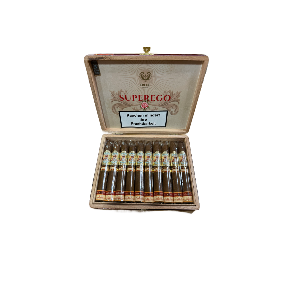 Die Freud – SuperEgo Belicoso steht für moderne Boutique-Zigarrenkunst mit klarer Linie und hohem Qualitätsanspruch. Sie ist Teil der SuperEgo-Serie der Marke Freud, die sich durch präzise Blends, sorgfältige Tabakauswahl und ein ausdrucksstarkes Design auszeichnet.
