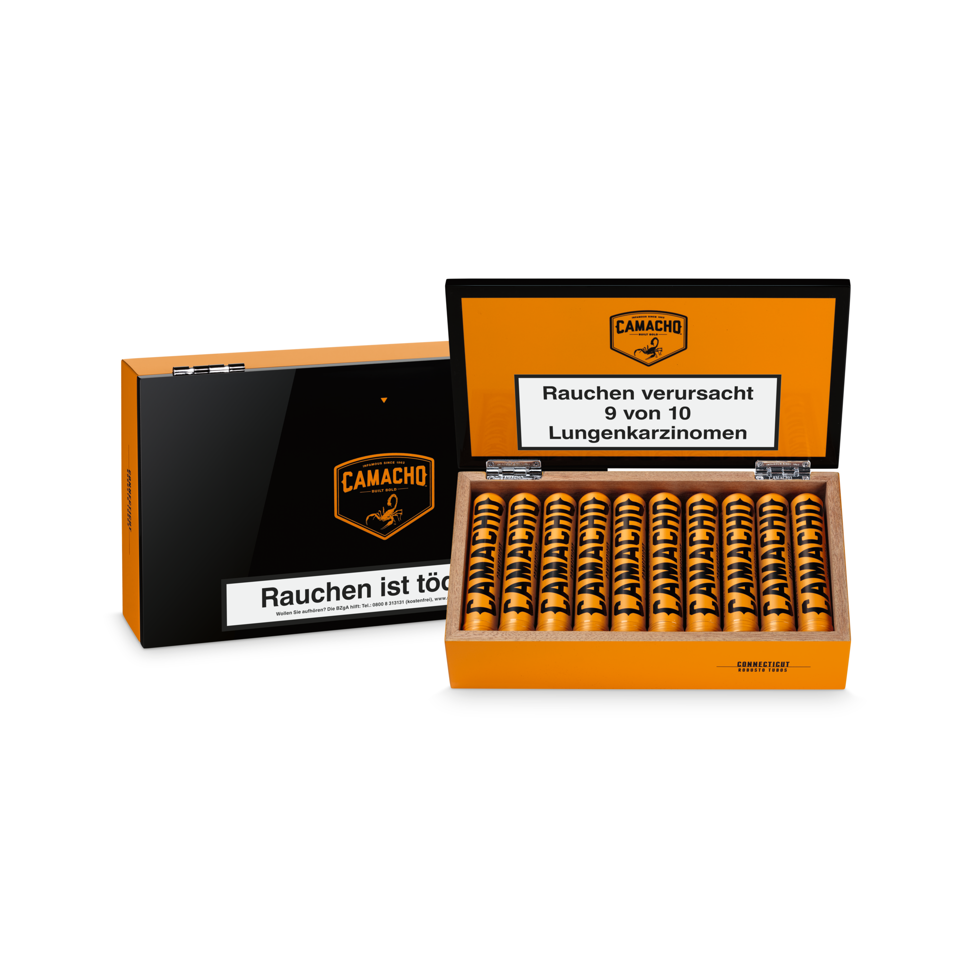 Die Camacho Connecticut Tubos ist eine elegante Zigarre, die in einem praktischen Aluminiumtubo verpackt ist und somit ideal für unterwegs ist. Mit einem seidigen Ecuadorian Connecticut-Deckblatt, einem honduranischen Corojo-Umblatt und einer Mischung aus dominikanischen und honduranischen Tabaken bietet diese Zigarre ein mildes bis mittelkräftiges Raucherlebnis. Erleben Sie die harmonischen Aromen von cremigem Kaffee, Zedernholz und einer subtilen Würze, die sich in jedem Zug entfalten. Die Camacho Connecticut Tubos ist perfekt für Genießer, die eine sanfte und ausgewogene Zigarre suchen, die jederzeit und überall genossen werden kann.