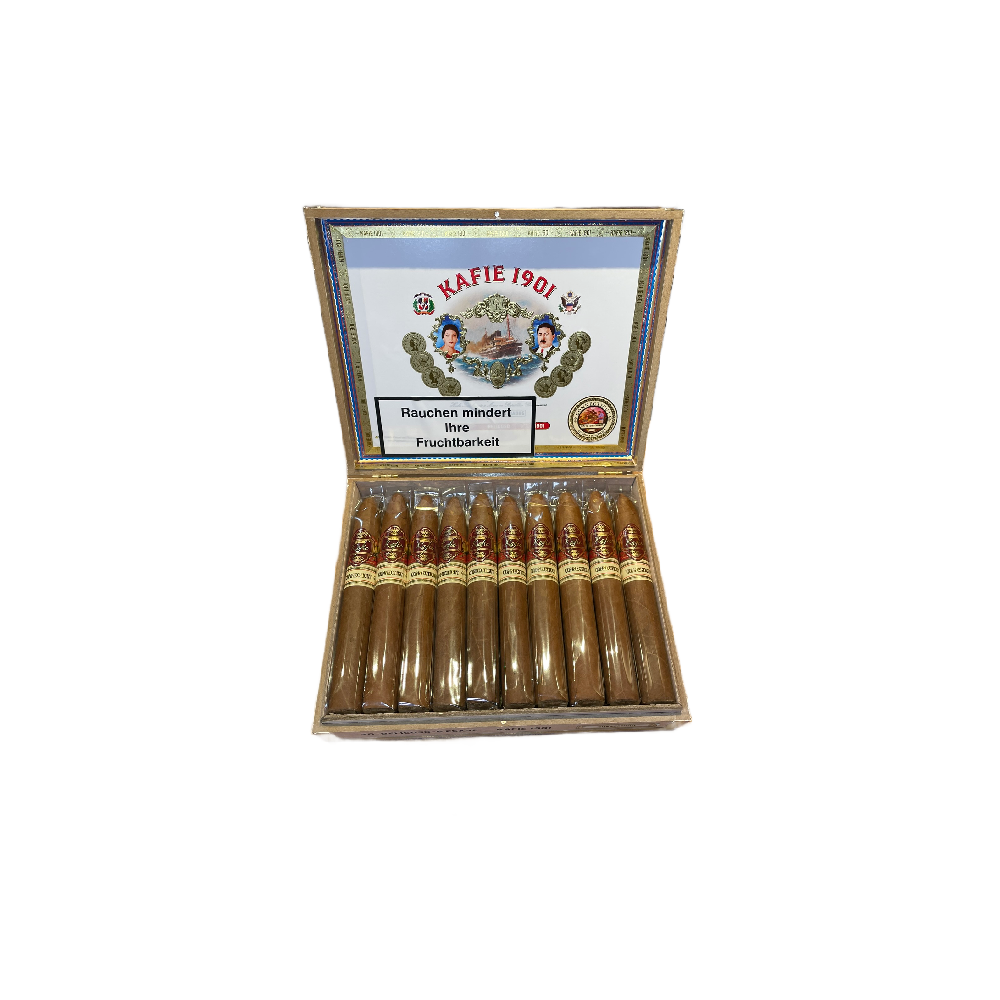 Kafie 1901 ist die Original-Zigarrenlinie von Dr. Gaby Kafie, gegründet 2013, und steht für sorgfältig gereifte Blends mit internationalem Charakter. Der Name „1901“ ehrt den Migrationsbeginn der Familie nach Honduras – und symbolisiert Tradition, Familienstolz und Premiumqualität.