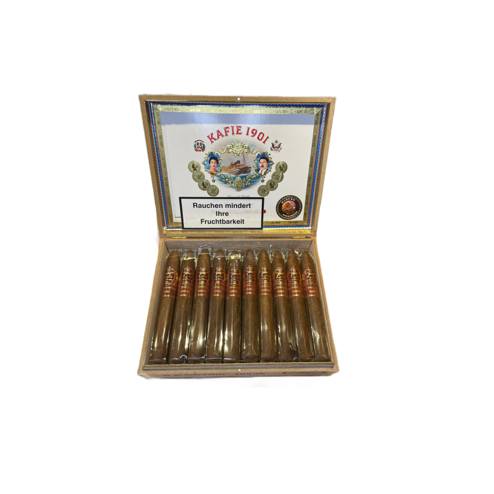 Kafie 1901 ist die Original-Zigarrenlinie von Dr. Gaby Kafie, gegründet 2013, und steht für sorgfältig gereifte Blends mit internationalem Charakter. Der Name „1901“ ehrt den Migrationsbeginn der Familie nach Honduras – und symbolisiert Tradition, Familienstolz und Premiumqualität.