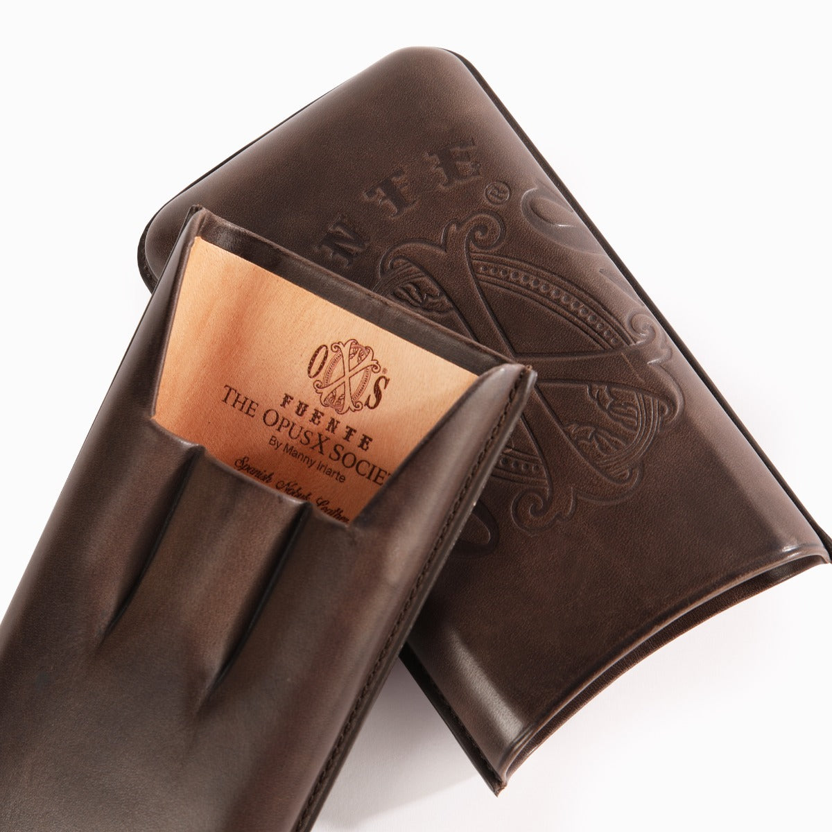 Fuente The OpusX Society OXS Spanischer Nobuk Leder 3 Zigarrenetui - Braun