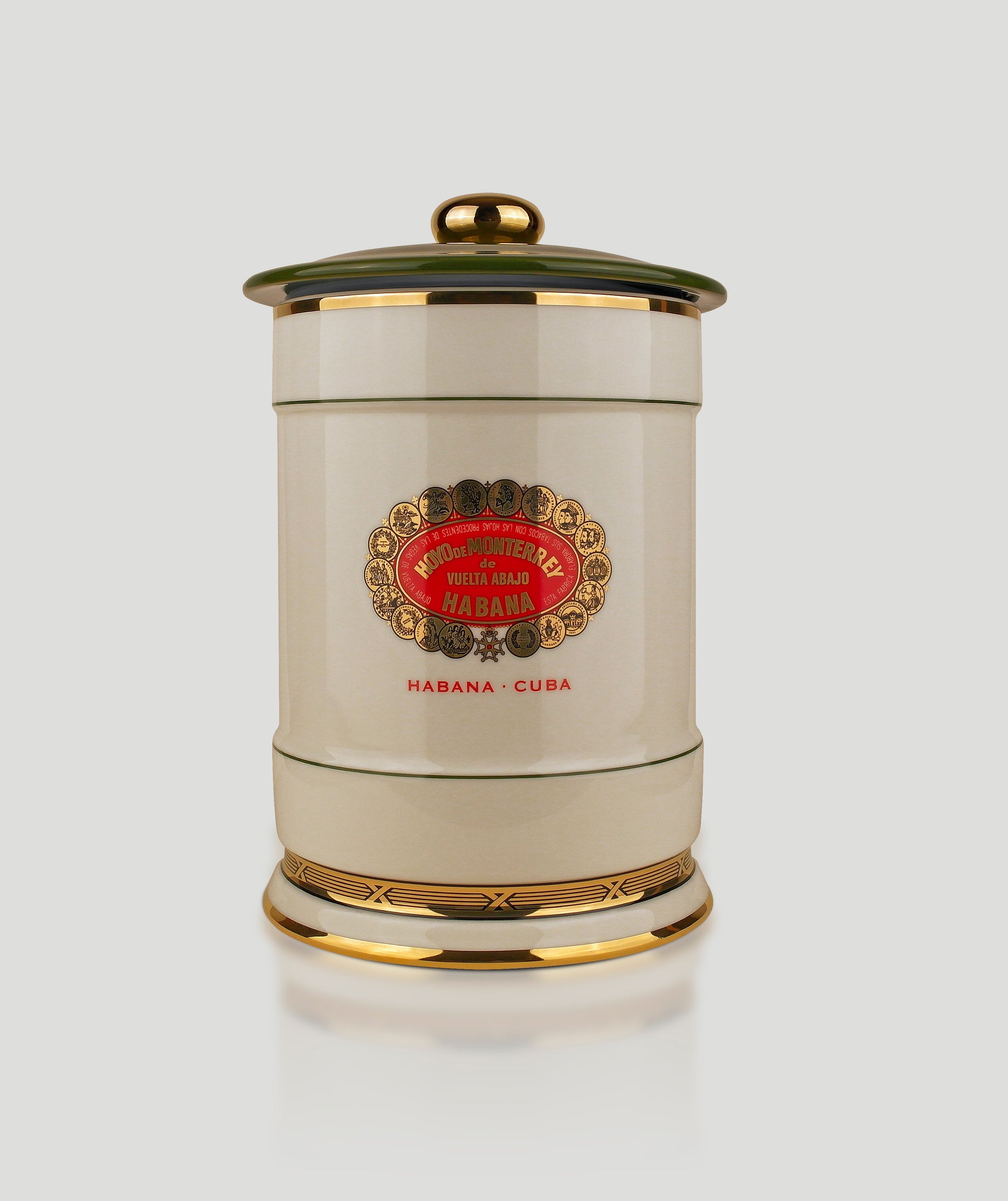 Cigarrendosen aus Porzellan aus Cuba sind eine klassische Form der Aufbewahrung von Habanos, die seit dem späten 18. Jahrhundert Verwendung finden. Diese Dosen, die oft auch „Jar“ genannt werden, bieten Platz für bis zu 25 großformatige Cigarren, die darin aufrecht stehend gelagert werden. Der Erhaltung der notwendigen Feuchte dient ein passives Befeuchtungselement im Deckel der Jars.